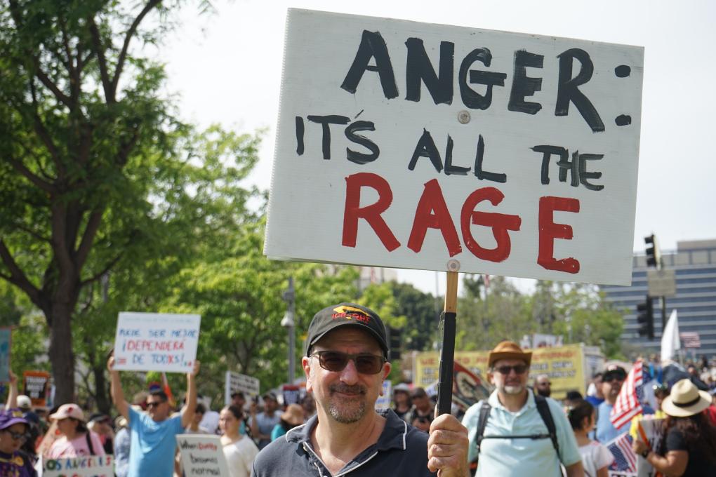 3月28日,人们在美国加利福尼亚州洛杉矶参加“不要国王”抗议活动。新华社发(曾慧 摄)