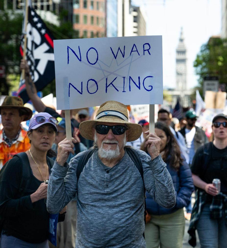3月28日,人们在美国加利福尼亚州旧金山参加“不要国王”抗议活动。新华社发(朱子于 摄)