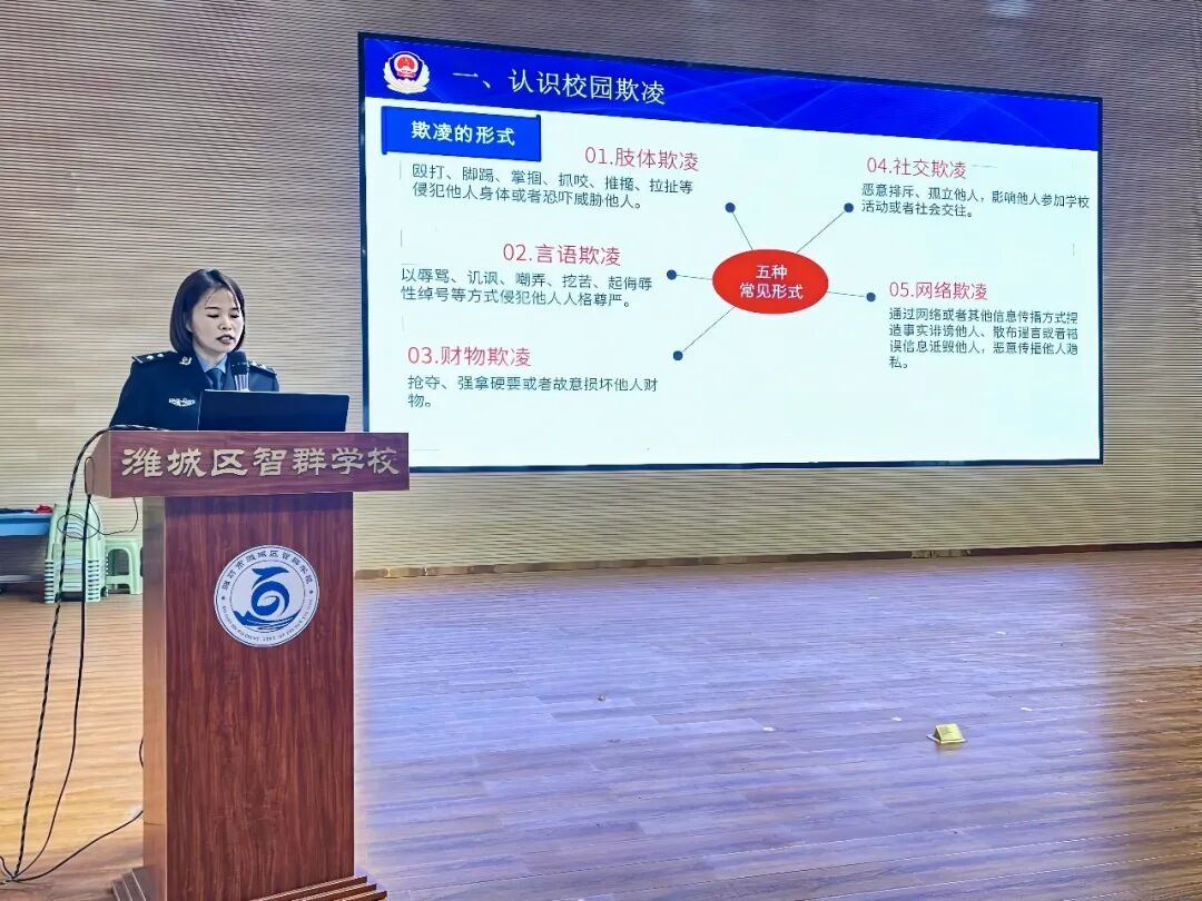 潍城公安分局民警走进潍城区智群学校大讲堂,开展“同守护,共成长”主题安全教育活动。民警结合校园典型案例,围绕交通安全、防溺水、防欺凌、防诈骗、消防安全等重点内容,用通俗易懂的语言讲解安全知识与避险技能,现场互动答疑、发放宣传资料,引导学生知危险、会避险,进一步增强师生安全防范意识与自我保护能力。