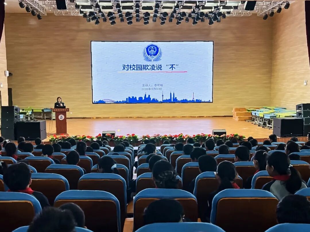 高密市公安局民警积极履行法治副校长职责,走进辖区各中小学校,开展以“防欺凌、防诈骗、禁毒、交通、普法宣传”为主题的安全知识宣讲活动,为师生送上一堂生动的安全防护课。