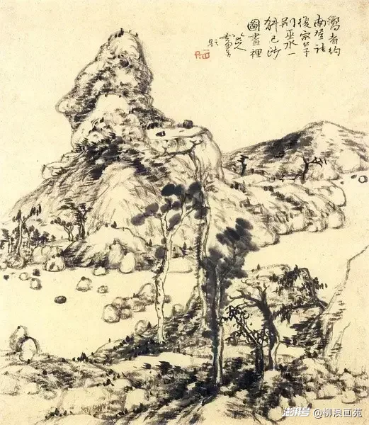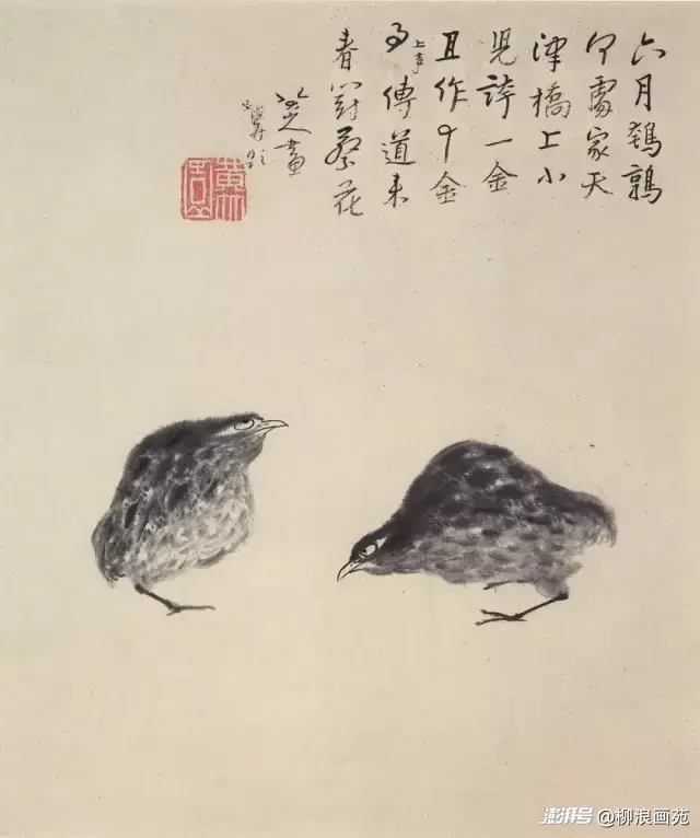 这份极简,更在构图上彰显出以小搏大的非凡气度,于方寸之间造无垠天地。八大山人的画作,向来摒弃满纸堆砌的繁复构图,偏爱大面积留白,以极简的物象占据画面一隅,却让留白生出无尽意蕴,形成“虚实相生,无画处皆成妙境”的极致效果。看他的《孤禽图》,偌大宣纸之上,唯有一只单足独立的孤鸟,缩身侧目、白眼向天,其余皆是空白,可这空白不是空洞,而是天地、是江湖、是孤寂,是孤禽背后无边的辽阔与苍凉,小小一禽,却撑起了画面的全部气场,以极小的物象,撑起了极大的精神格局。再观《鱼石图》,一尾游鱼、几块顽石,寥寥数笔,无波无浪,却让人于空白处见流水潺潺、天地悠悠,于极简构图中,生出烟波浩渺的壮阔之感。他从不靠物象的繁多营造气势,而是以极简的布局、精准的笔墨,让每一处线条、每一块墨色都极具分量,以小物藏大气,以极简显雄浑,这份构图的智慧与气度,是艺术境界的极致升华,更是内心格局的全然流露。