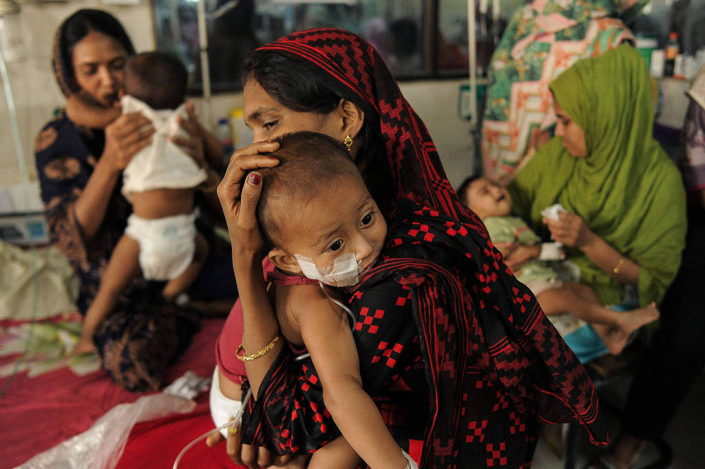 当地时间2026年4月6日,孟加拉国吉大港,一名女子在吉大港医学院医院的麻疹病房照料儿童。视觉中国 图