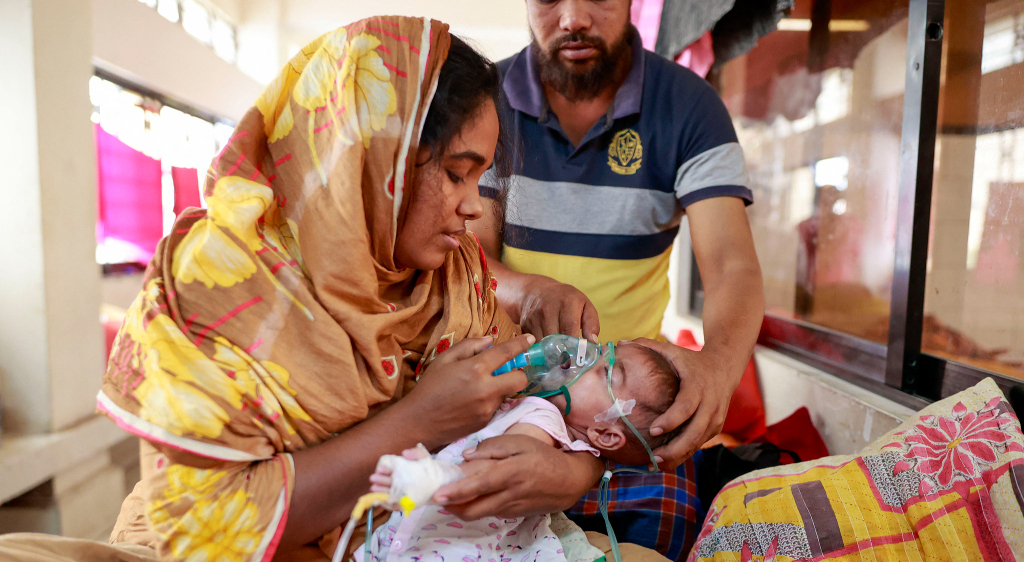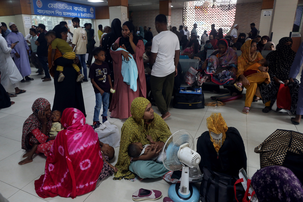 当地时间2026年3月31日,孟加拉国达卡,儿童因麻疹感染人数上升被送到医院治疗。视觉中国 图
