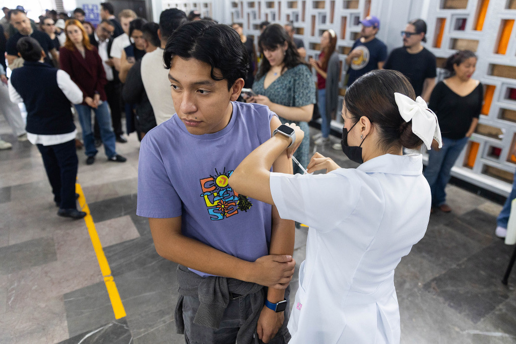 当地时间2026年2月11日,墨西哥墨西哥城,一名男子在疫苗接种活动中接种麻疹疫苗。视觉中国 图