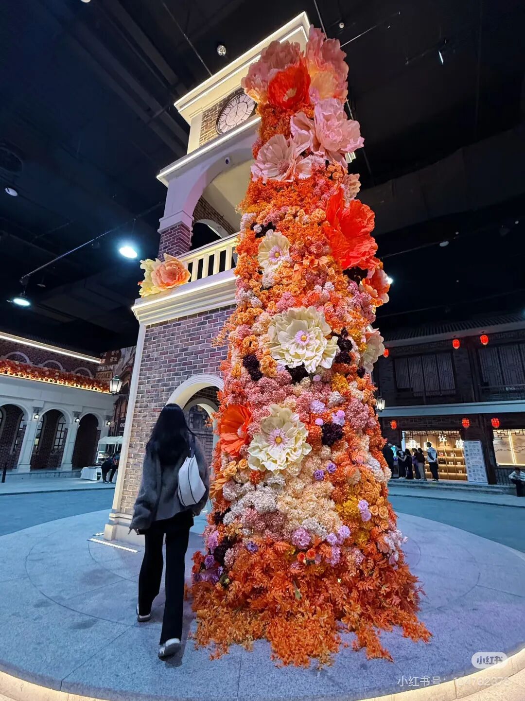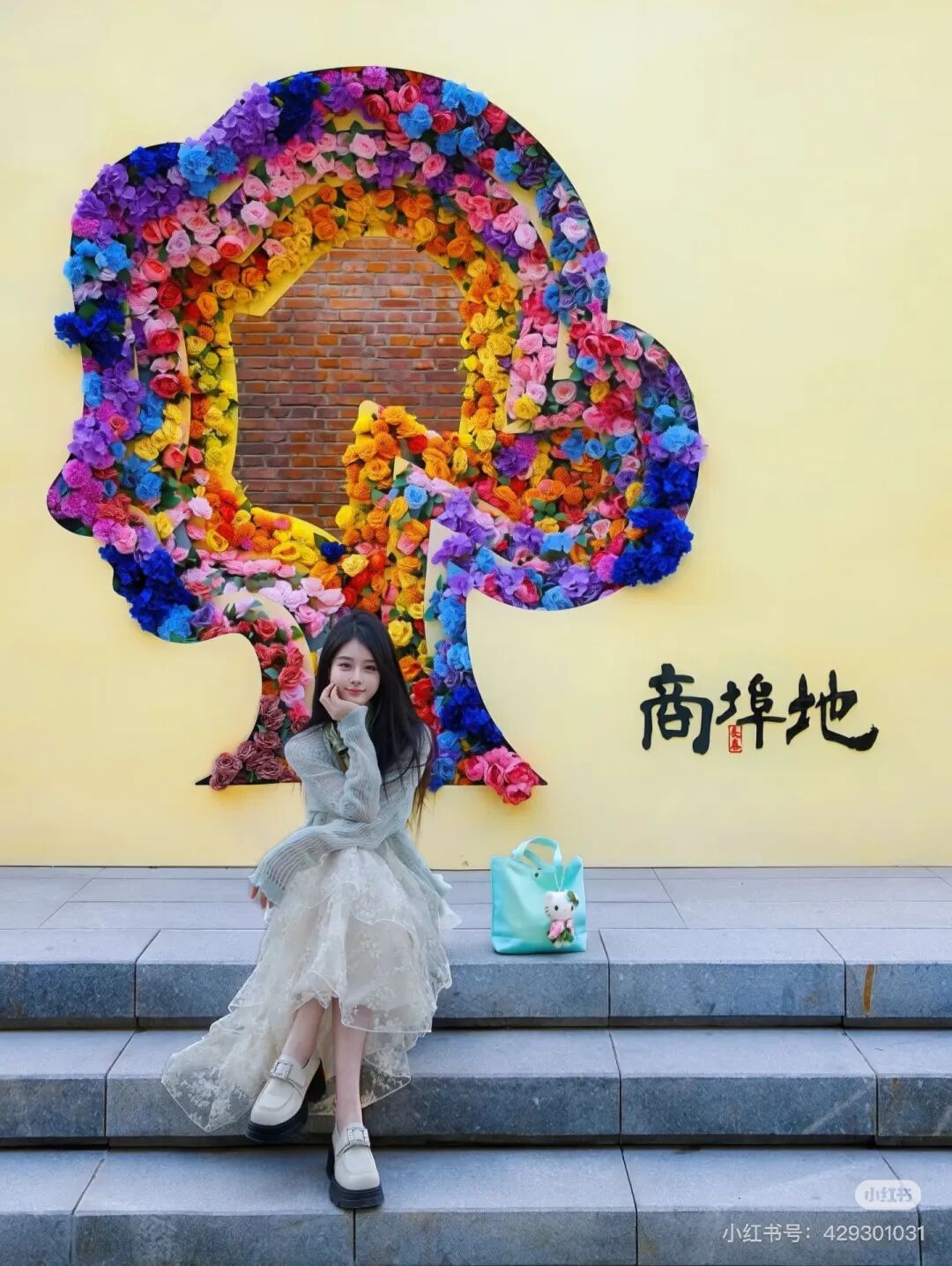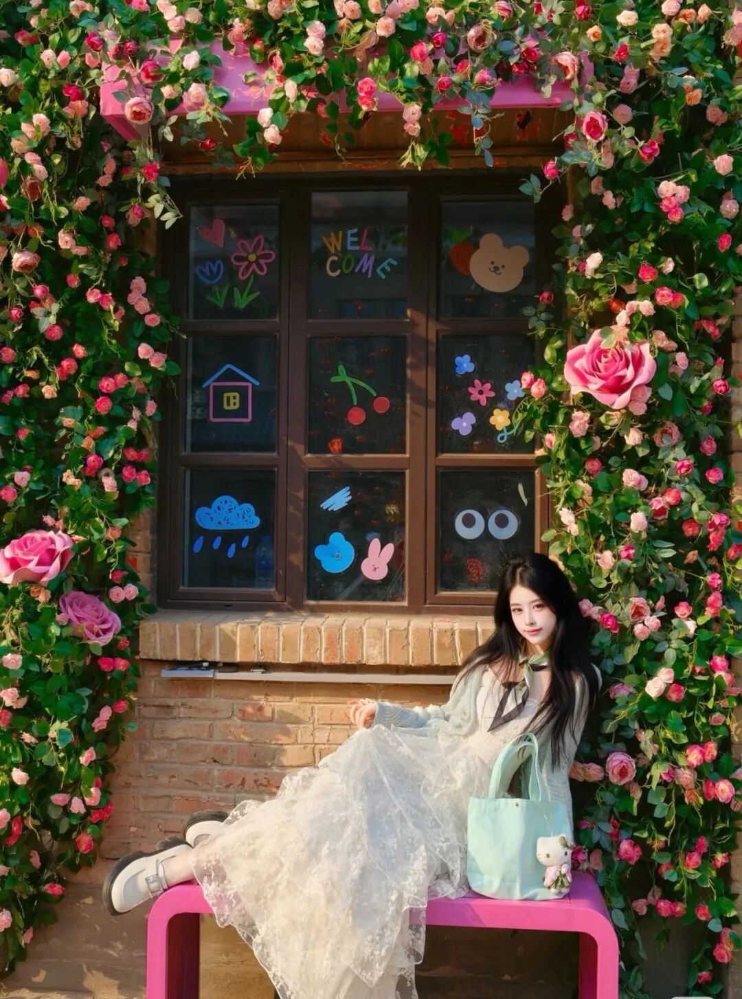 一面由各色花朵交织缠绕的鲜花墙惊艳亮相,静静站在花下,连吹过的风都仿佛带着清甜的气息。
