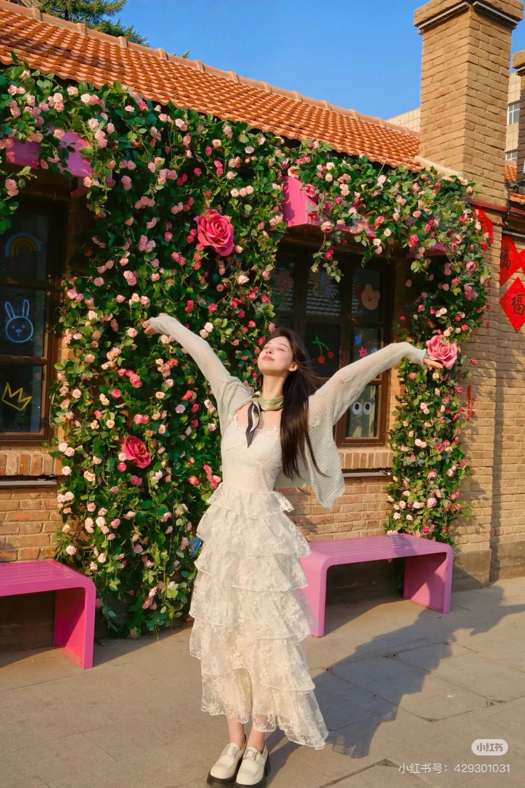 每日15:00-16:00是这里的黄金拍摄时段,柔和阳光穿透花枝,洒下斑驳光影。穿白色、浅黄色衣衫,尽显清新脱俗!换上红色系穿搭,瞬间成为花海焦点,鲜艳色系自带高光滤镜~
