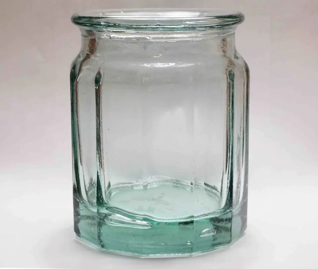 人们常说的“生玻璃”就是普通钠钙玻璃,图中这个普通玻璃制成的罐子薄的部分是透明的,厚的部分则呈现蓝绿色。 | Zaereth