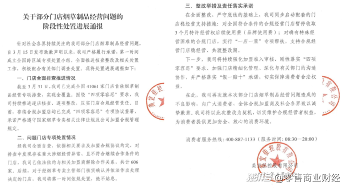 4月9日,美宜佳控股有限公司发布《关于部分门店烟草制品经营问题的阶段性处置进展通报》。