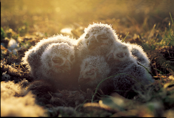 一九八八年六月,我在汇入北冰洋的科尔维河流域发现雪鸮的巢穴。苍天不负有心人,我终于在荒芜一片的冻原上,在高度只有三十厘米的小丘旁,发现朝思暮想的雪鸮巢穴,而且里面还有四颗蛋。