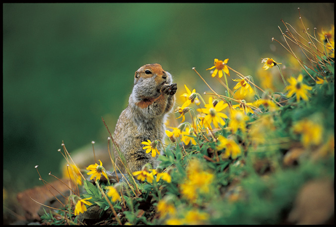 进入冬眠的北极地松鼠,体温会下降到冰点附近,以假死状态度过冬季。漫游在阿拉斯加原野的北美灰熊也进入深层睡眠,等待春季的到来。