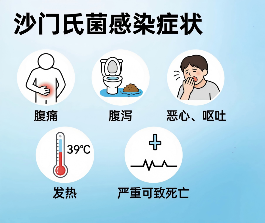 沙门氏菌是一种肉蛋奶中的常见致病菌,怕热、不怕冷,有很强的耐低温性,可在冰箱存活3~4月。当环境温度达到100℃时,沙门氏菌就会直接死亡。而被沙门氏菌感染后轻则会引起腹痛、腹泻、恶心、呕吐、发热,严重可能会导致死亡。