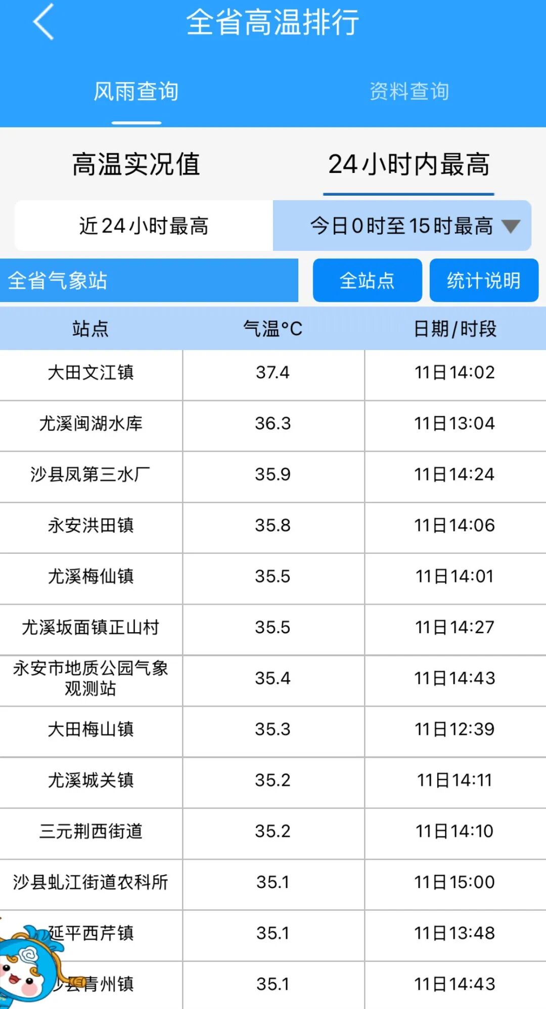 全省多个站点突破35℃