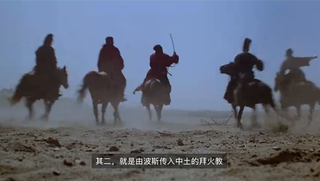 其次是明教各种习俗及教史。《倚》中提及的大部分明教习俗,如素食、裸葬、白衣等,均有古籍可考。陈志明书中皆一一列明出处。不过小说中的叙述,包括所谓杨逍著《明教流传中土记》,更直接的来源,应是陈垣1922年初发,1934年二校的《摩尼教入中国考》,和法国沙畹、伯希和1911-1913年著,冯承钧1927年汉译,1931年出版的《摩尼教流行中国考》。前文提到过的刘南强论文,已经注意到“明教流传中土记”与陈垣文题之类似。两篇长文搜罗宏细,陈文还一并刊布了两种敦煌《摩尼教残经》。这几种材料,无论在内地或香港大型图书馆里均不难获取。且以金庸初办《明报》时,报馆的人手及工作强度,他恐怕是没有时间自己或委托他人查阅古籍中原始出处的。不过也有若干例外。如所谓明教白袍上绣有火焰图案,教众双手十指张开,于胸前作火焰升腾状的手势,都不见于记载,应是小说创作。而例外中影响最严重的,当属灭绝师太所谓“魔教以火为圣,尊火为神”;说不得所谓“明尊即是火神,也即是善神”。虽然属于善神阵营的五明子中确有妙火一位,但全书中圣火的地位之高,实在不像是在崇拜“清净光明,大力智慧,无上至真,摩尼光佛”的摩尼教中,而更像祆教,即祆教教外习称的“拜火教”所为。《倚》中并无“祆教”或“拜火教”字眼;但由于书中描写本就有混淆两教之嫌,再加上改编影视作品推波助澜,如王晶1993年的电影《倚天屠龙记之魔教教主》,开头便说“从波斯传入中土的拜火教,他们自称明教”。故而普通观众多有人将两教混为一谈。及至本世纪,甚至伊朗企业都开始拿“小昭”、“明教总坛”之类,作为在华推广伊朗旅游的噱头。这一点后文还会提及。