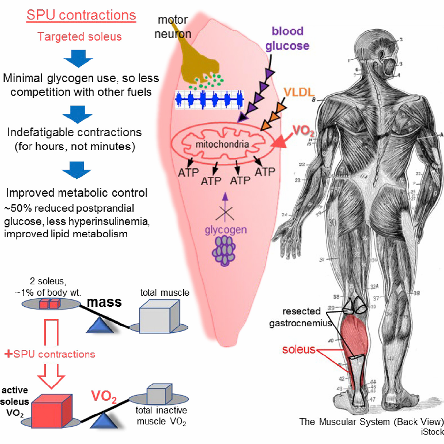 传统运动强调"动用大肌肉群、提高全身代谢率",但往往伴随着大量糖原消耗和交感神经兴奋,反而可能引起反跳性高血糖(运动结束后血糖反而更高)。而SPU走的是另一条路——只调动1%的肌肉,但让其局部代谢强度极高、持续时间极长,同时几乎不刺激肾上腺素和皮质醇,因此没有反弹效应。