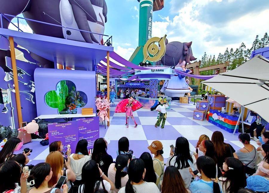 总计8万平方米的展区中有三分之二位于室外,工作人员也装扮成穿着COS服的NPC,为玩家指引路线。
