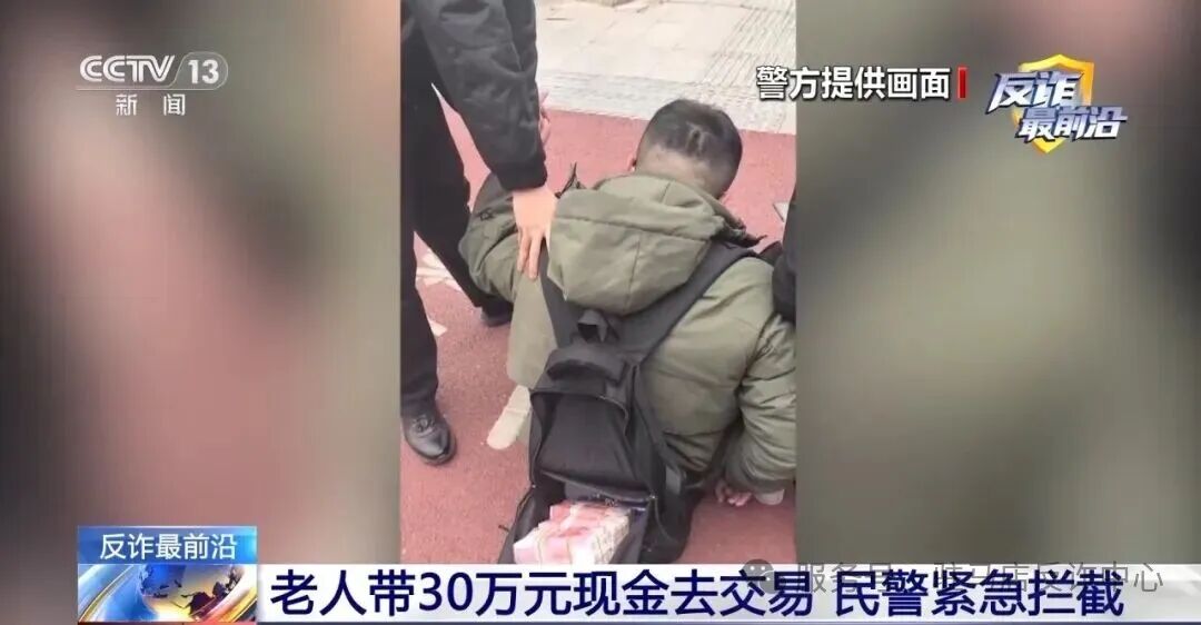 视频中背着黑色双肩包的男子正是负责收取涉诈资金的犯罪嫌疑人,他前脚刚从被害人手中接过钱,后脚就被两名民警迅速控制。警方当场从他的背包里查获这笔刚刚得手的赃款,总计30万元。