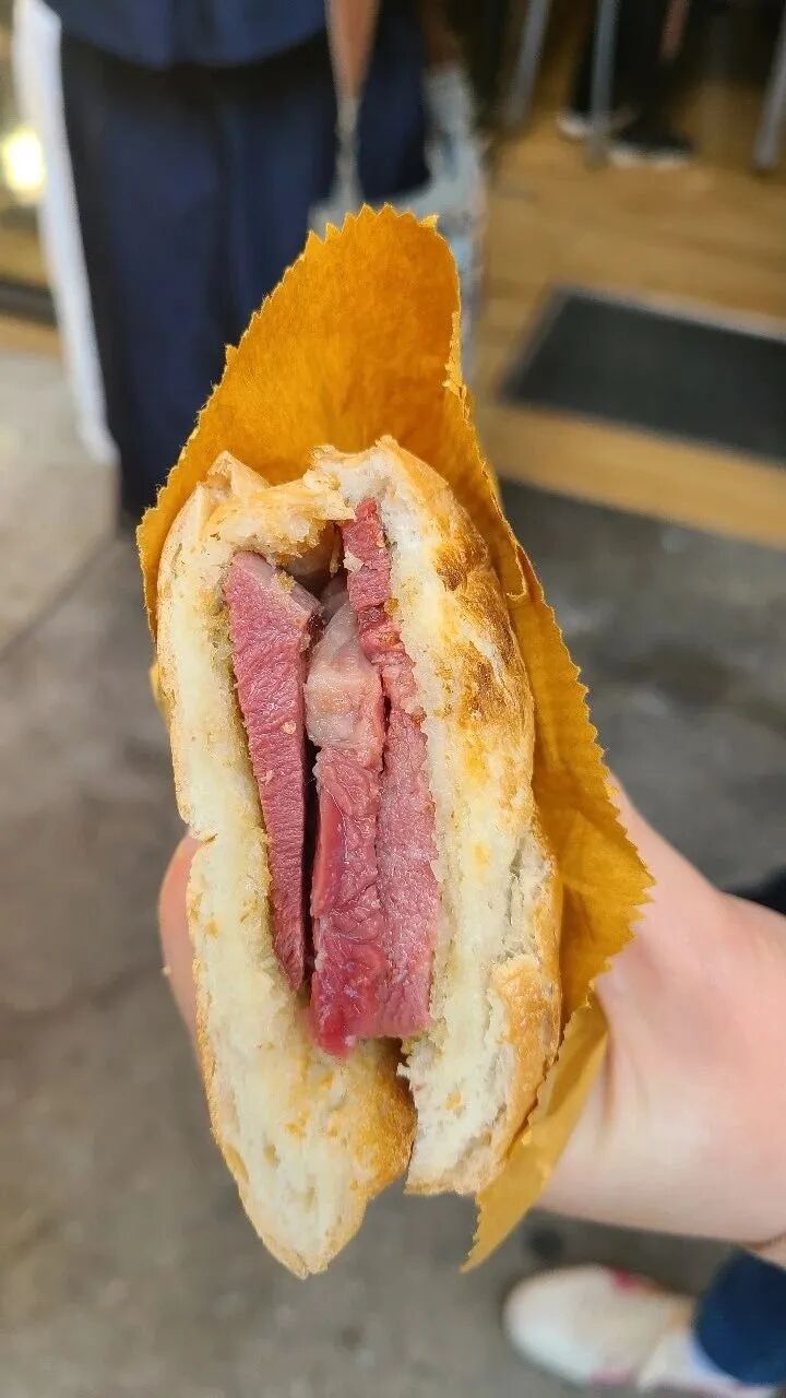 但牛舌并不干,相反汁水丰盈,咬下一块酥脆的面包,浸润着咸牛舌的咸香滋味,一点也不输猪扒肉的口感!