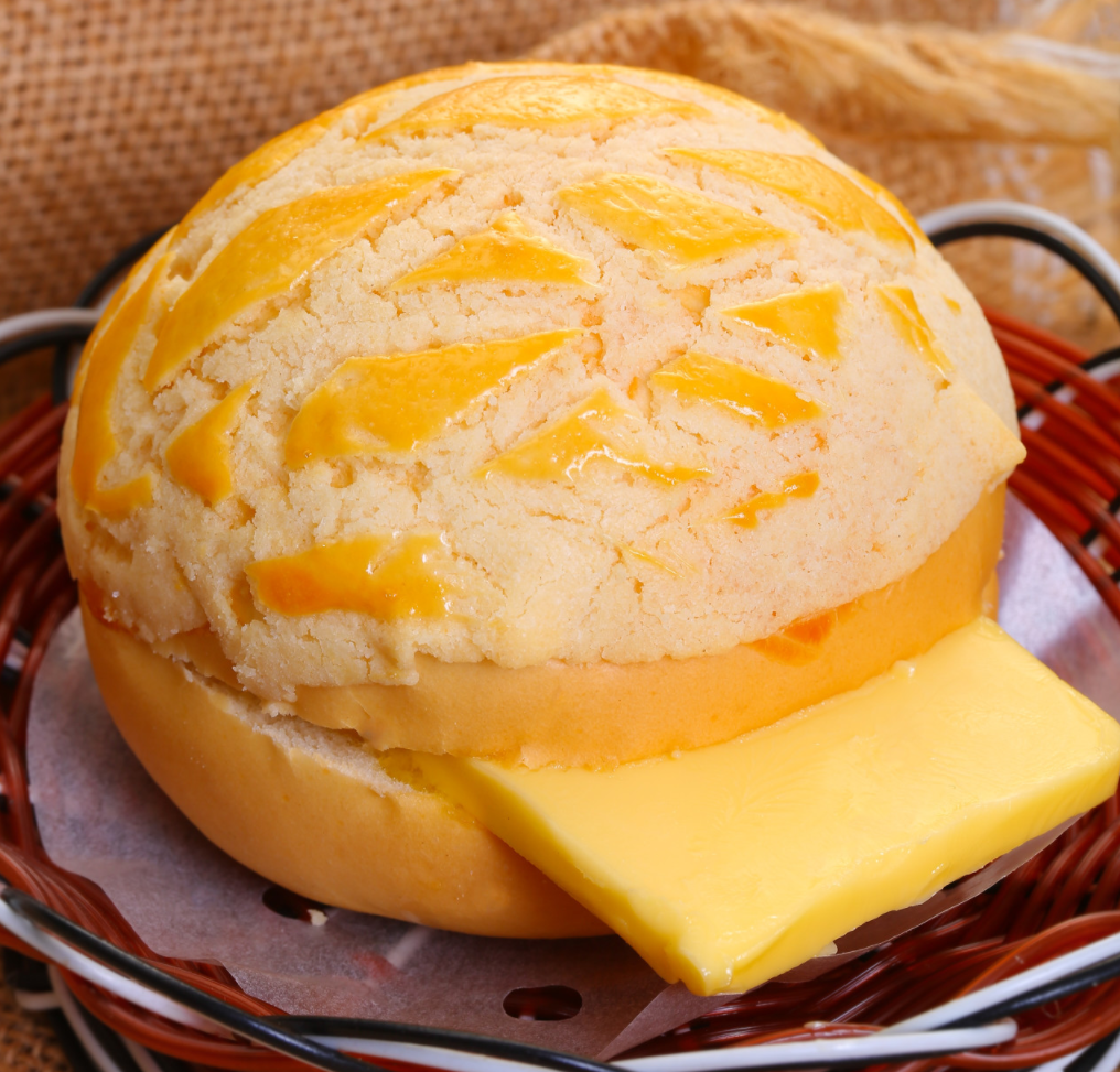 菠萝油原本是港式茶餐厅的招牌,将新鲜出炉的菠萝包打横剖开,往里塞入黄油,在菠萝包余温的作用下,黄油会慢慢融化散发出迷人的脂香。而菠萝包本身的酥皮也足够厚实酥脆,难怪一推出就成了茶餐厅的王牌。