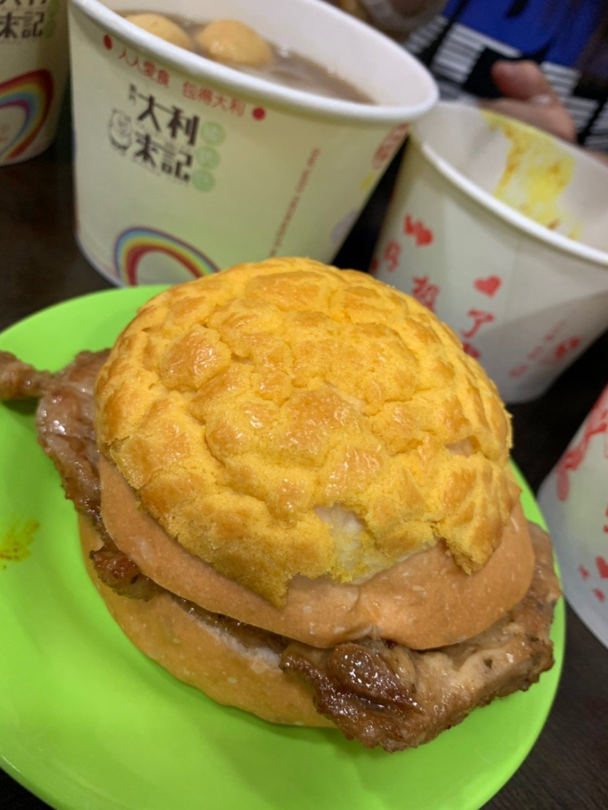 菠萝油这个经典组合也可以和猪扒变身成菠萝油猪扒包。黄油的香气明显且突出,风味十足。不过菠萝油本身口味偏甜,与咸鲜口的猪扒是否合得来,就看个人口味,见仁见智了~