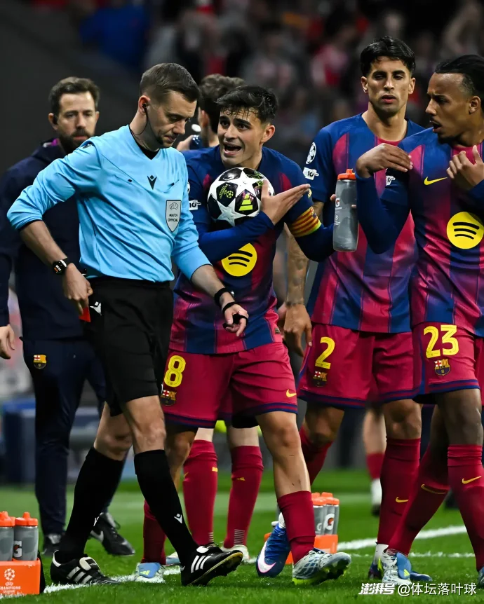 第55分钟,费兰补射破门,VAR划线显示越位仅几厘米。如果那球算进,总比分将扳为3-3,比赛走势将彻底改写。第24分钟费尔明头部受伤导致比赛中断时,正是巴萨攻势最盛、马竞防线摇摇欲坠的时刻。第41分钟奥尔莫在禁区内被马科斯·略伦特双手推倒,裁判未予理会——而同样的动作在另一端导致了加西亚的红牌。