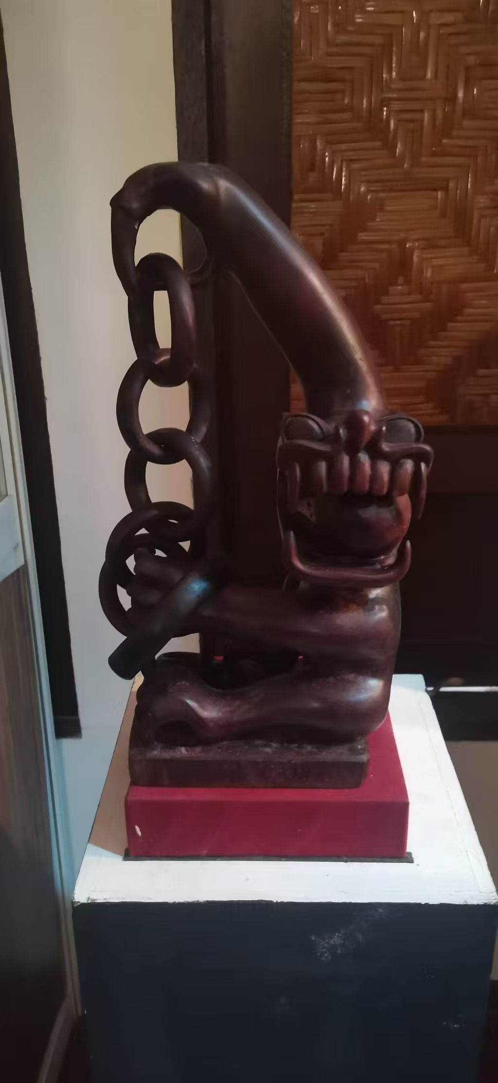 “被锁住的老虎魂灵”雕塑,作者拍摄于玛美里文化村。