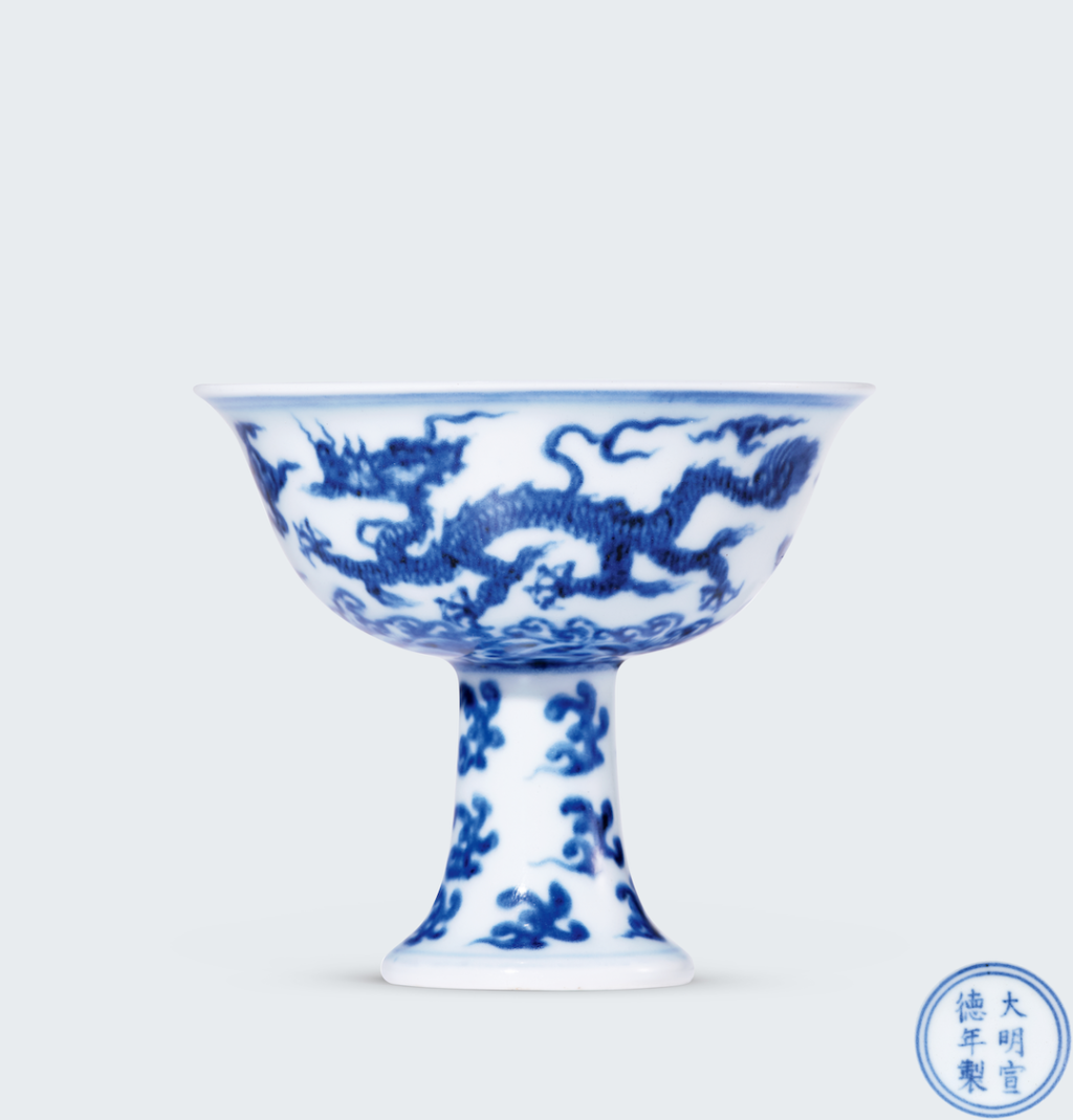 青花云龙纹高足杯