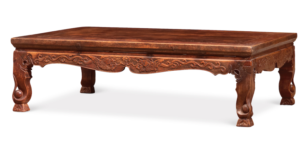 明晚期黄花梨有束腰应龙纹可折叠炕桌