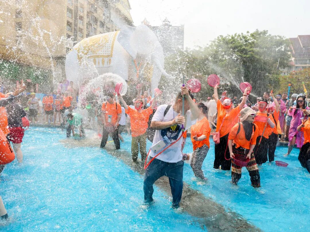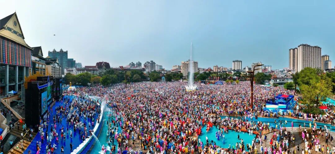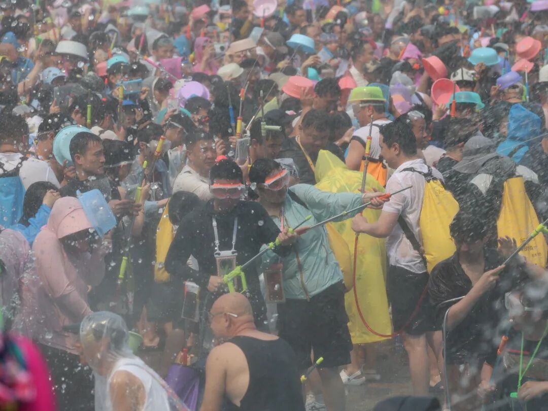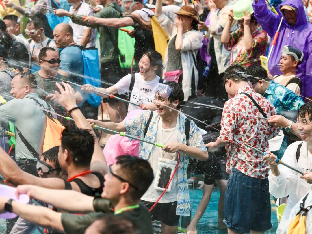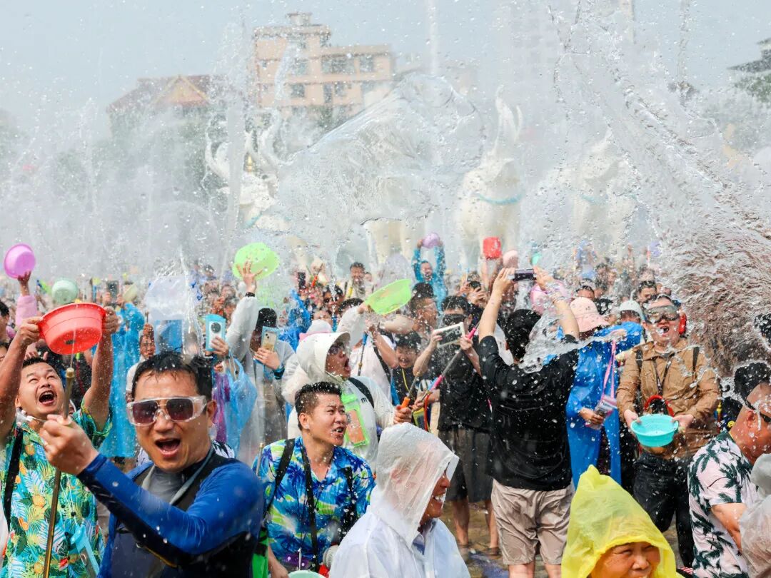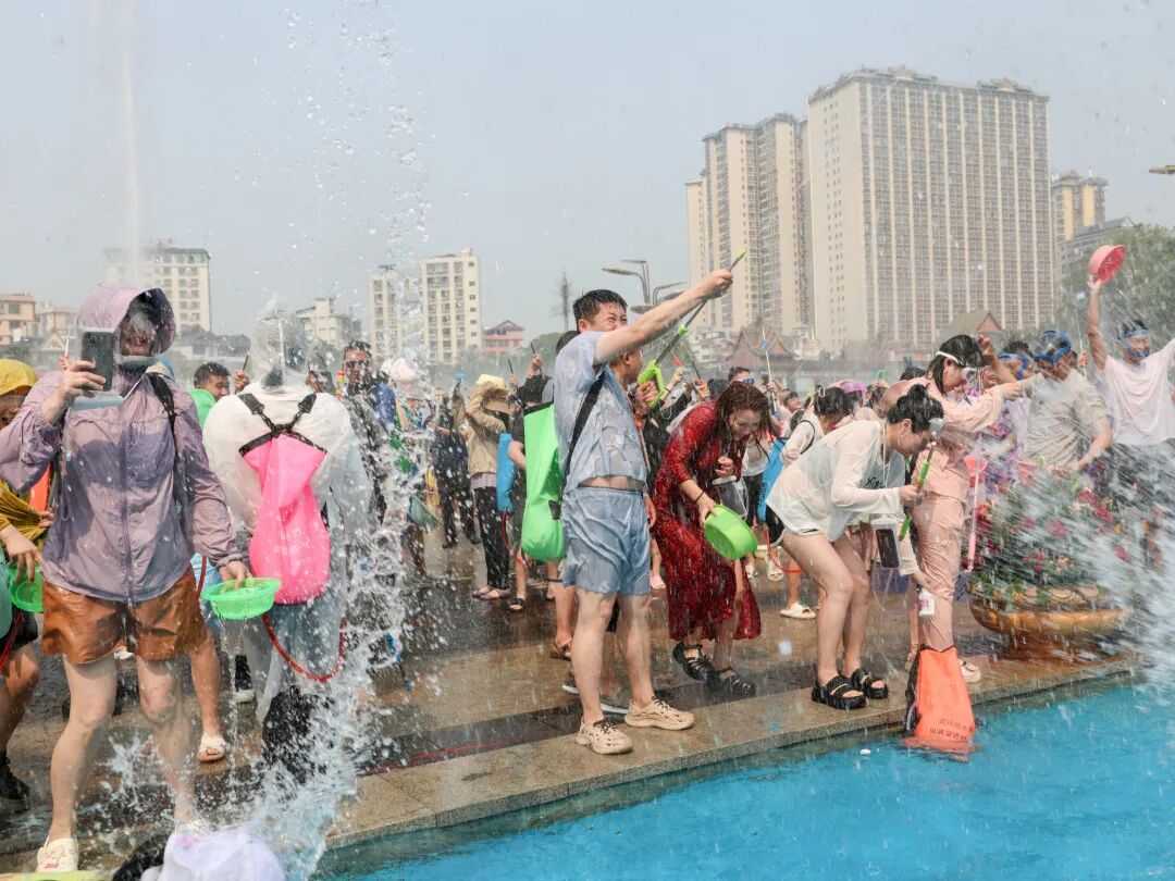 在旅居游客较为集中的融创茂周边,一场别开生面的泼水大战也同步上演,旅居游客与本地居民们手持各式“武器”开展“水战”,大家尽情泼洒,共享清凉与祝福。水花飞溅之处,不分你我,只有祝福。清冽的水,不仅洗去了夏日的炎热与生活的疲惫,更架起了一座情感的桥梁。对于旅居在此的“新市民”而言,西双版纳不再只是他乡的风景,而是亲身融入的第二故乡。此刻,融创茂前的这场“水战”,既是西双版纳开放包容城市魅力的缩影,也是“有一种叫云南的生活”最鲜活的注脚。