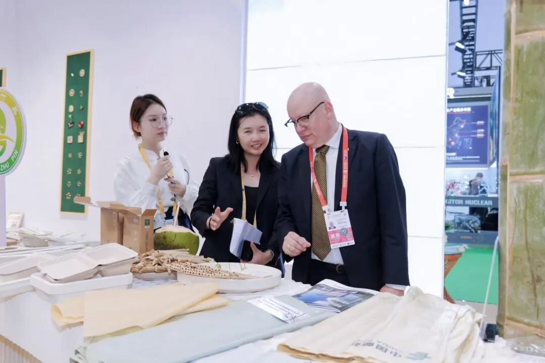 本届消博会聚焦绿色低碳与可持续消费,与国际竹藤组织“以竹代塑”理念高度契合。海南省具有独特的自然资源和区位优势,自推进中国特色自由贸易港建设以来,致力于探索绿色包容发展路径,寻求更广泛的国际交流与合作,积极拓展与国际竹藤组织的合作伙伴关系。