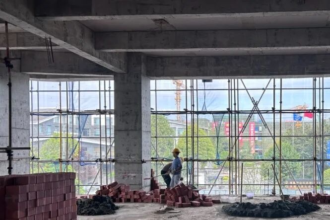 自去年8月底开工以来,二期项目进展顺利,今年2月已全面封顶,目前正进行二次结构墙体施工,预计1个月内完成砌墙,5月初启动设备安装、水电及外墙施工,6月初主体工程基本结束,8月底完成竣工验收。