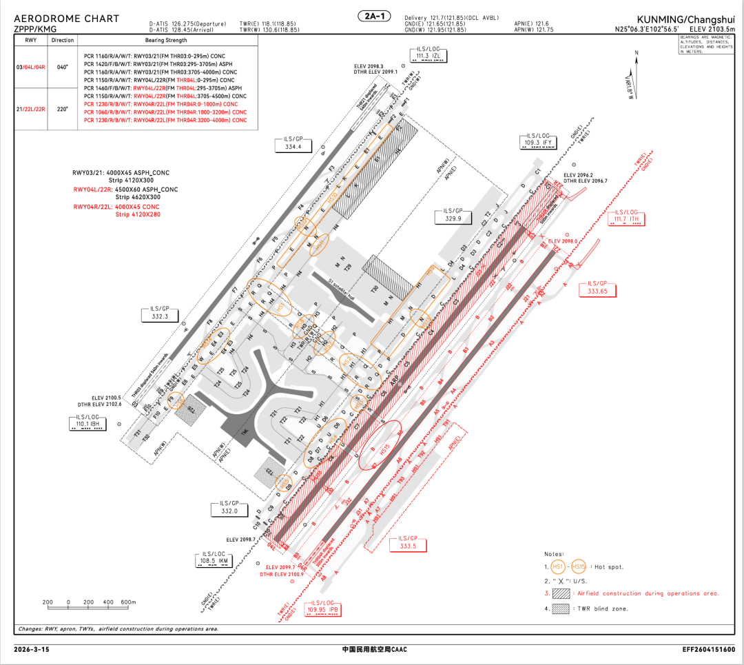昆明长水国际机场改扩建工程重要建设内容之一的东二跑道建成并计划于4月16日投入使用。同步将关闭东一跑道及部分滑行道,并对东一跑道实施不停航施工改造。