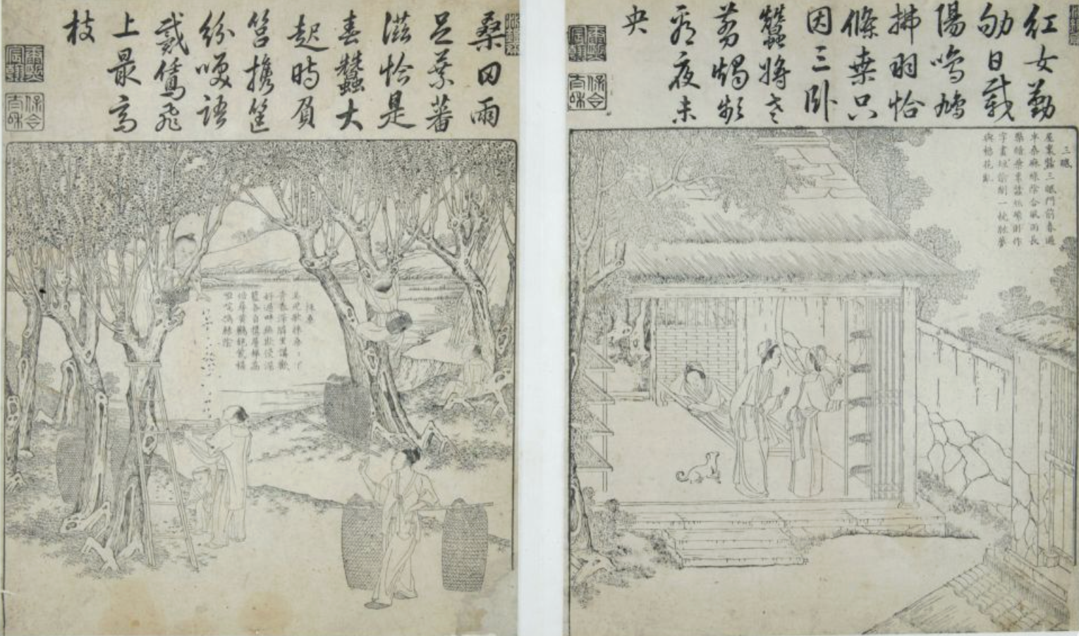 《御制耕织图》又名《佩文斋耕织图》,清圣祖玄烨题诗,焦秉贞绘图,朱圭、梅玉凤镌刻,清康熙三十五年(1696年)内府刊本。故宫博物院