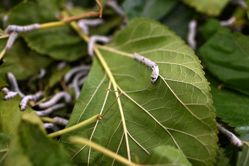 蚁蚕出壳后,便是日夜不停的悉心饲育。刚孵化的蚁蚕浑身布满细毛,两天后细毛逐渐淡化,出壳约40分钟便萌生食欲,蚕农要及时采摘鲜嫩桑叶,切碎后细细投喂。谷雨时节气温稳定在20—30℃,恰好是桑蚕生长的适宜温度。待到幼虫长至五龄,便会花费两天两夜不眠不休吐丝结茧,一枚蚕茧抽出的蚕丝,最长竟可达1.5公里。之后蚕在茧中蜕皮化蛹,十余天后羽化为蚕蛾,破茧交尾产卵,完成生命的轮回。