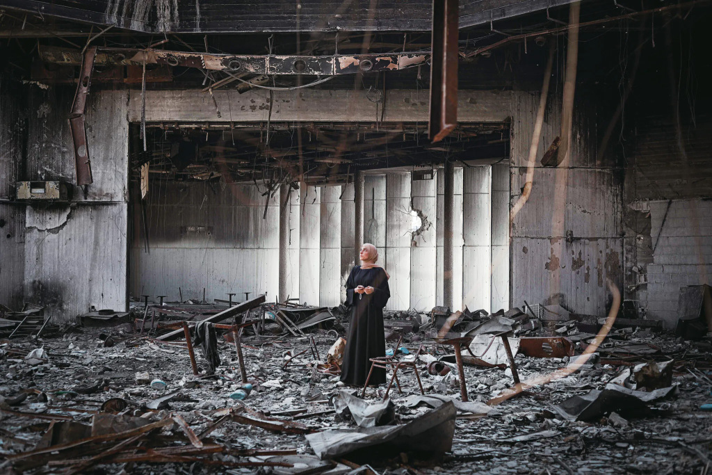 展览“加沙之眼”展示了巴勒斯坦摄影师法特玛·哈索纳(Fatma Hassona)的摄影,她刚满25岁就因以色列袭击而身亡,遇害的还有她的六名家人。哈索纳对加沙毁灭的凝视是坚定强烈的。正面广角镜头显示了破坏的程度和意图,她的摄影成为对种族灭绝行为的重要声音。与此同时,她温柔的目光弥补了加沙人民被抢走的尊严,展示了一无所有的人依然有的自豪。在压倒性的破碎混凝土中,一片色彩成为人类永存的证明。“在这场死亡和毁灭中,我在寻找生命。”哈索纳曾说。