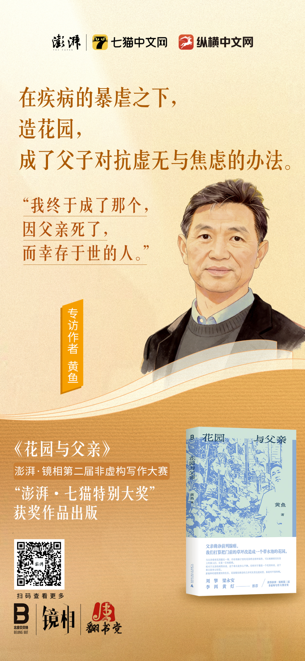 这是《花园与父亲》的最后一句话,也是一场临终照护的情感收束。在父亲人生的最后五年,作者黄鱼进行着三种建造:为父亲治病,和父亲一起造一座花园,为父亲建一处墓地。在疾病的暴虐之下,造花园,成了父子对抗虚无与焦虑的办法。黄鱼将这段经历写成了非虚构,并摘得澎湃·镜相第二届非虚构写作大赛“澎湃·七猫特别大奖”。