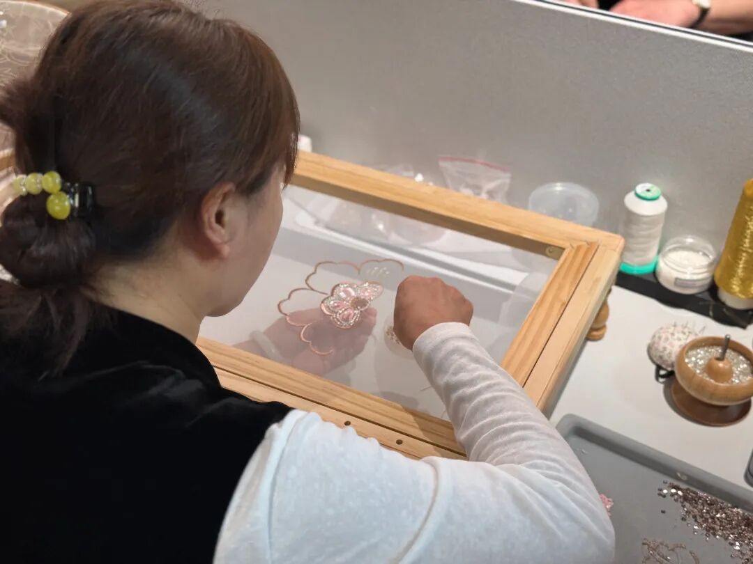 蔓楼兰将水晶元素与中式剪影纹样结合,历经分层热压工艺,呈现流光溢彩的视觉效果