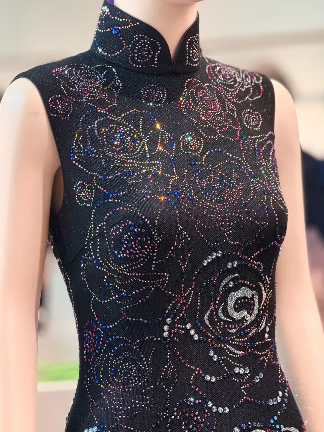 这份认可,源于对传统工艺的极致坚守与创新表达。盘扣作为旗袍的点睛工艺,在保留古法编织、盘绕技艺等传统制式的基础上,创新设计出花鸟、祥云、几何等多种贴合当代审美的样式,小小一枚盘扣,往往要耗费数小时手工打造;经典的滚边、嵌条工艺,坚持全手工缝制,把控每一丝线条的平整度与贴合度,做到线条流畅、分毫毕现;非遗苏绣技艺也不再局限于传统纹样,绣娘们通过丝线粗细、色彩渐变的巧妙搭配,让纹样更具层次感,同时创新性融入法式刺绣的立体肌理、精致烫钻工艺,让百年非遗以当代审美焕新表达。正是这种“看得见的匠心”,让蔓楼兰收获无数名流与高端客群的信赖,成为海派旗袍的标杆符号。