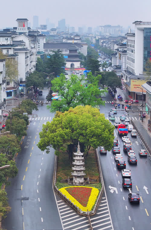 危塔入苍茫,春风拓八荒。东关烟火盛,古邑韵流长。