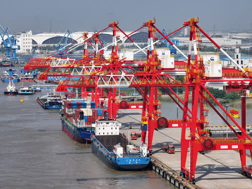 南码头,北码头。货积如山连海舟,旗飘商贾游。