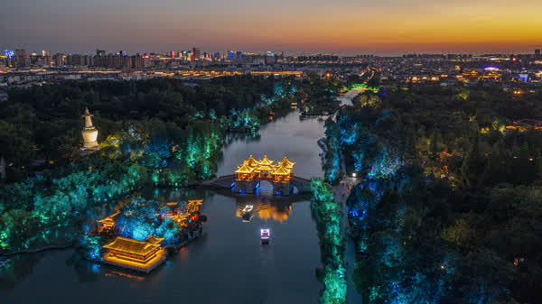 古运河畔霓虹起,水幕歌飞廿四桥。