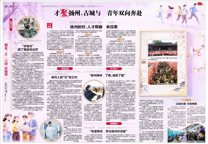 产业搭台,人才唱戏。扬州以产业聚人才、以人才兴产业,让技术落地、让梦想扎根,实现人与城双向奔赴。宜居的烟火、宜业的舞台、暖心的政策,让越来越多人才用脚投票、选择扬州。