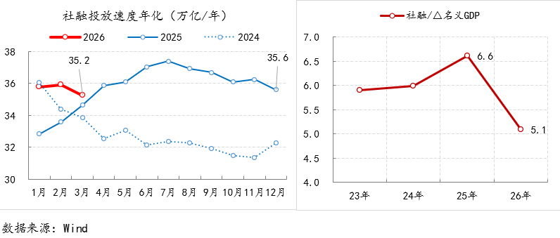 图1 社融对经济增长的拉动 注:2026年数据均为一季度的年化