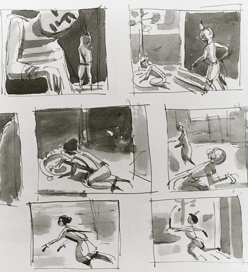 早期的分镜由铅笔绘制在纸上,十分不易保存。它们要么是被随意丢弃在制片厂的废纸篓里,要么是被归置进阁楼的小盒子里,当然前提是它们没有被扔掉。