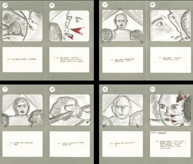 马丁为《愤怒的公牛》(1980)精心绘制的分镜