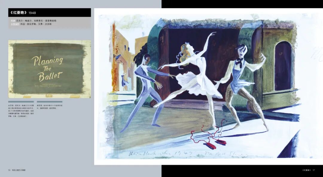 海因·赫克罗斯、艾弗·贝多斯绘制《红菱艳》(1948),用水粉、铅笔、油画颜料绘制,还原光鲜明亮的舞台世界