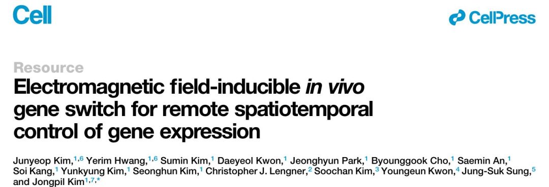 韩国东国大学Jongpil Kim在国际著名期刊《Cell》发表题为:“Electromagnetic field-inducible in vivo gene switch for remote spatiotemporal control of gene expression”的研究工作。