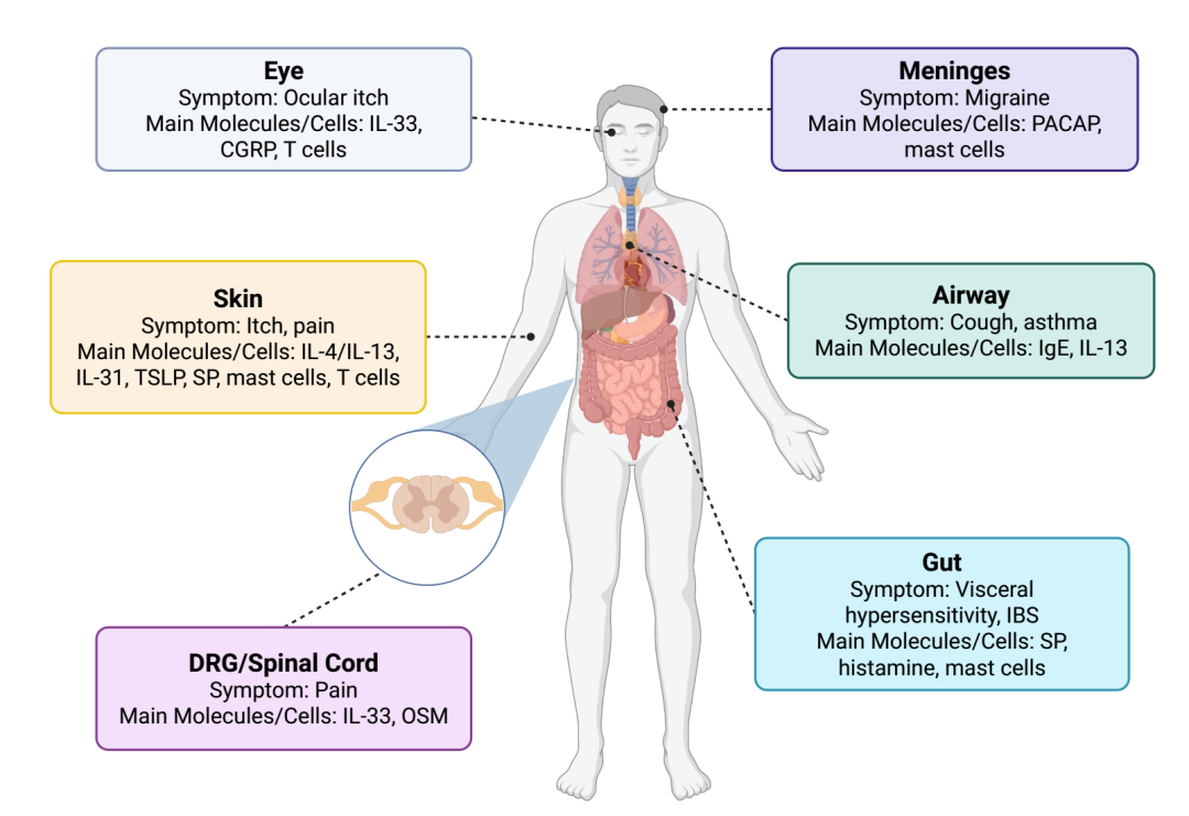 研究还有一个颠覆认知的发现:皮肤痒、眼痒、喉咙痒、肠道不适,甚至偏头痛,底层机制高度相似。