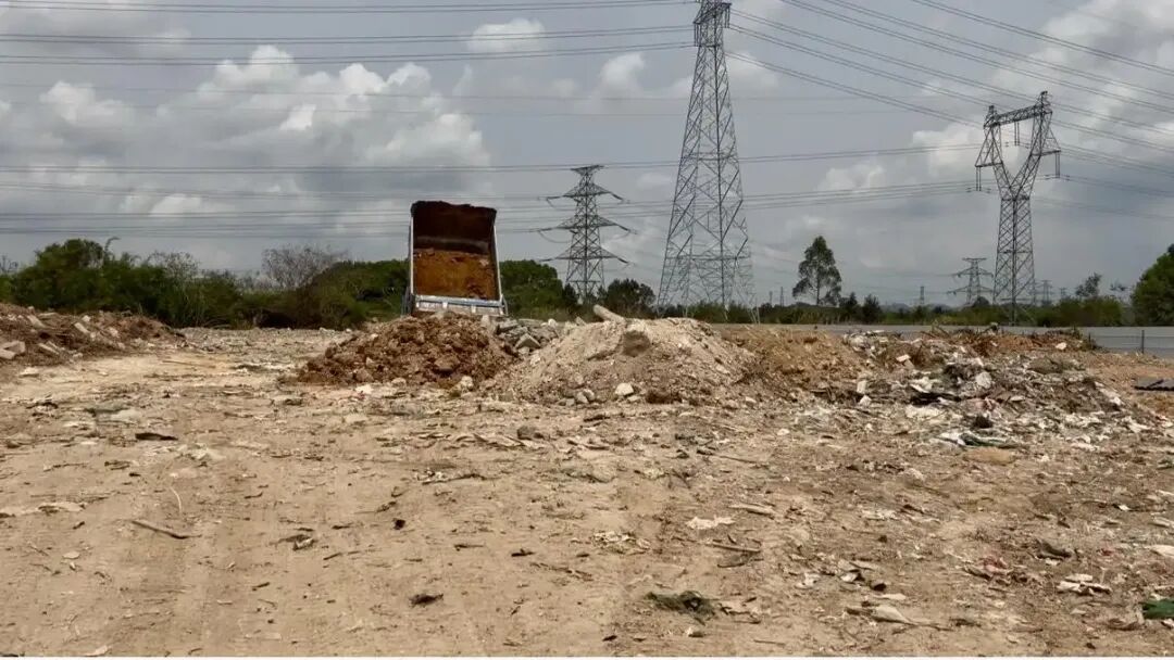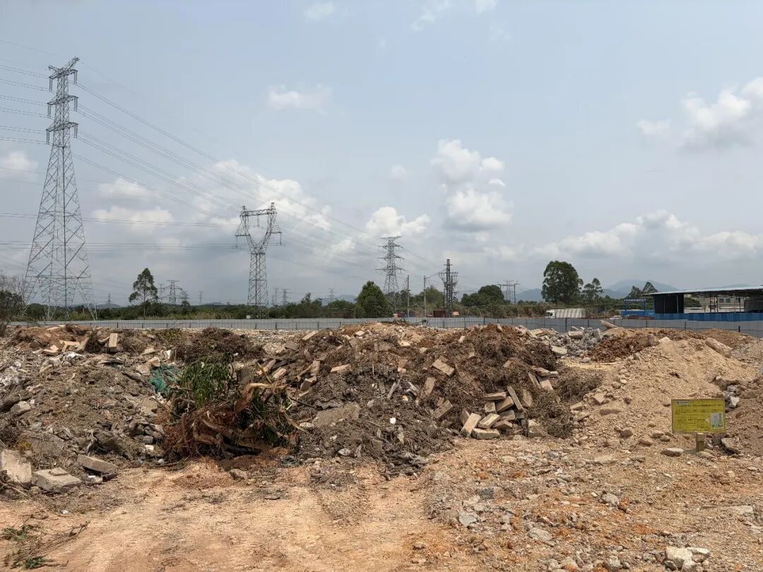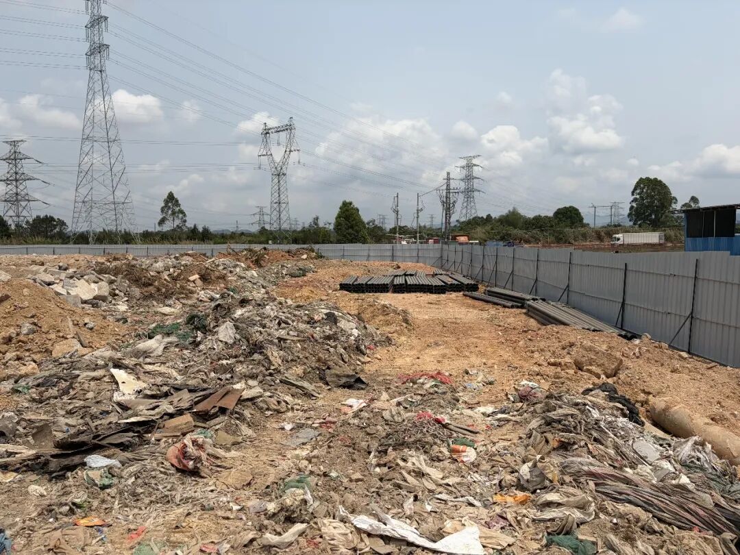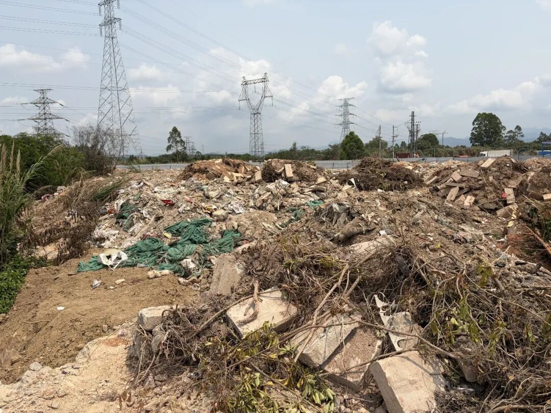 惠东县大岭街道鹏达路南方电网旁的空地堆放着大量建筑垃圾