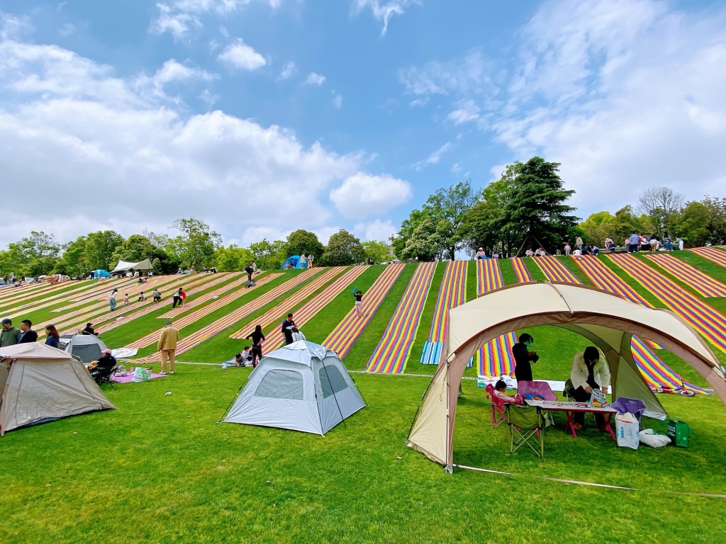 闵行区浦锦街道城建中心副主任陈超告诉记者,经初步统计,3月中下旬起每个周末,游客基本在3000-3500人次左右,彩虹布数量达到300-350条左右,帐篷数量也在300顶左右。他坦言,游客激增带来了一定的管理难度,比如滑草之后,地面上可以看到一条条滑痕,帐篷和彩虹布使用的地钉,也对草坡和草坪带来影响,卫生环境压力明显加大,仅垃圾量就日均增加40桶左右。