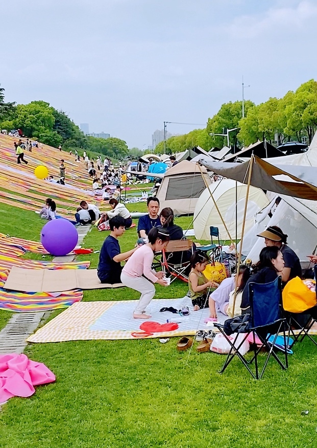 这样的尝试已经开启。4月18日-19日,街道联动周边商圈,推出“浦锦宠乐生活节”,打造草地市集、音乐会、露营手作等多元业态融合场景,将茶饮咖啡、运动户外、宠物服务等品类搬进草坪,来此滑草的人发现“可玩项目”变丰富了。